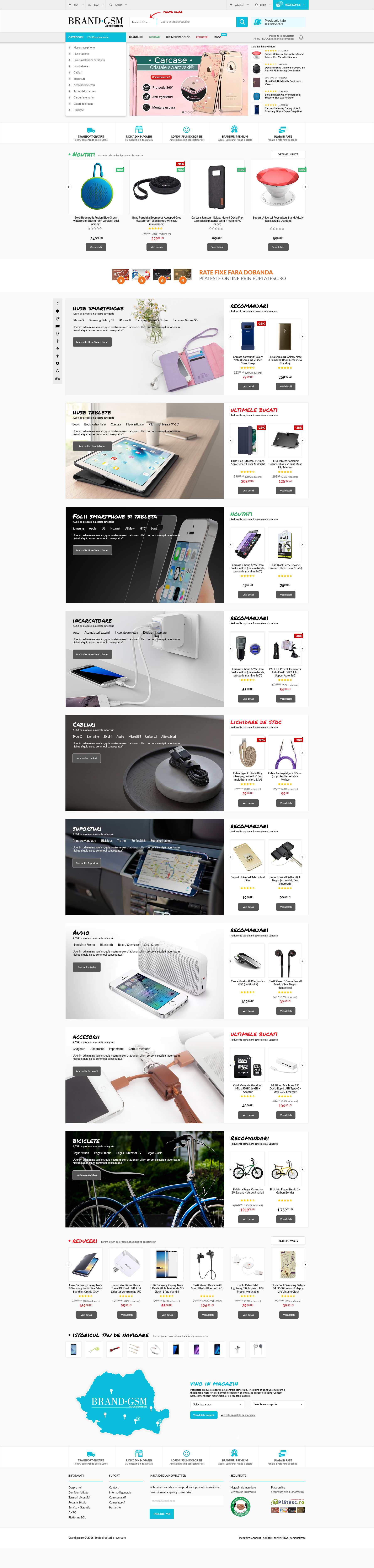 Prezent in online inca din 2012, insa cu 12 ani experienta de offline in spate. BrandGSM a invatat in timp tot ce tine de accesoriile pentru telefoane si tablete ramanand conectati la informatie pentru a aduce intotdeauna cele mai noi gadget-uri si produse fashion pentru telefonul clientilor sai. Compania are un stoc continuu de accesorii pentru toate telefoanele aflate in topul vanzarilor din Romania.
