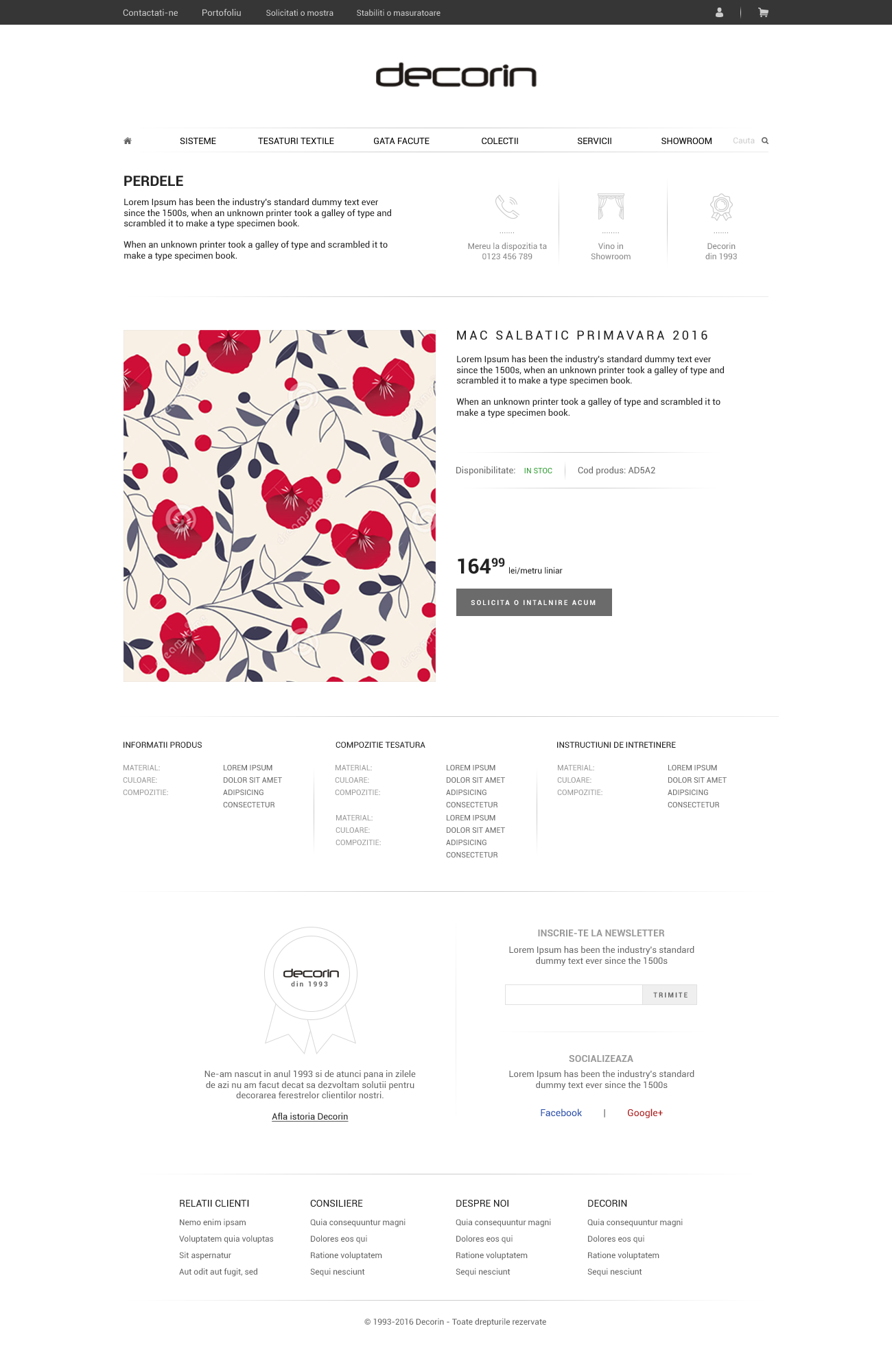 Inca de la aparitie, din 1993, Decorin continua sa-si mentina pozitia pe piata romaneasca, fiind cel mai vechi furnizor de solutii pentru draperii si perdele. Compania se bazeaza pe o cultura a muncii in echipa si promite sa depuna toate eforturile pentru a oferi cele mai inalte standarde ale produselor si serviciilor. Desi in ziua de azi astfel de servicii sunt din ce in ce mai intalnite, compania Decorin sunt cei ce au pus bazele si au inspirat piata de profil.