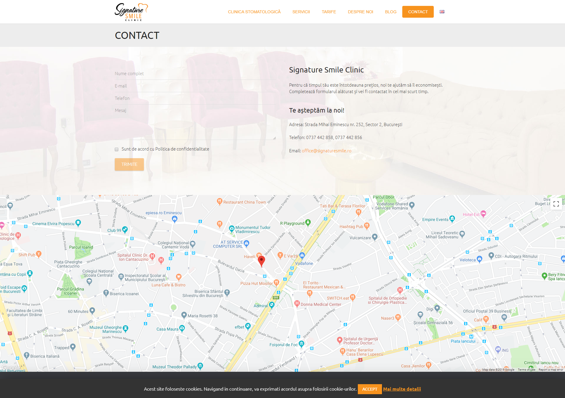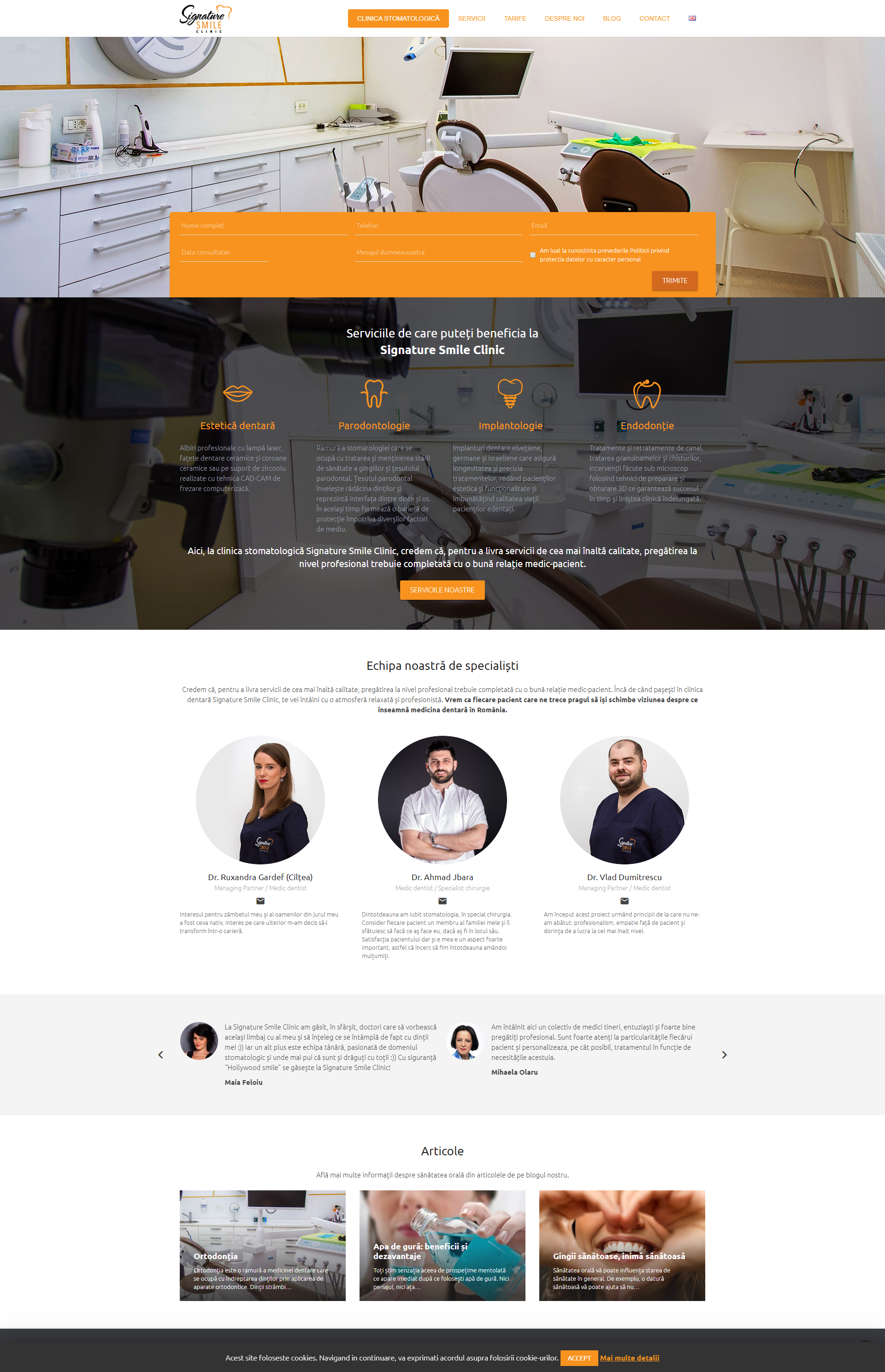 Signature Smile Clinic ofera servicii de estetica dentara, parodontologie, implantologie si endodontie. Inca de cand pasesti in clinica dentara Signature Smile Clinic, te vei intalni cu o atmosfera relaxata si profesionista unde fiecare client ce trece pragul ajunge sa isi schimbe viziunea despre ce inseamna medicina dentara in Romania.