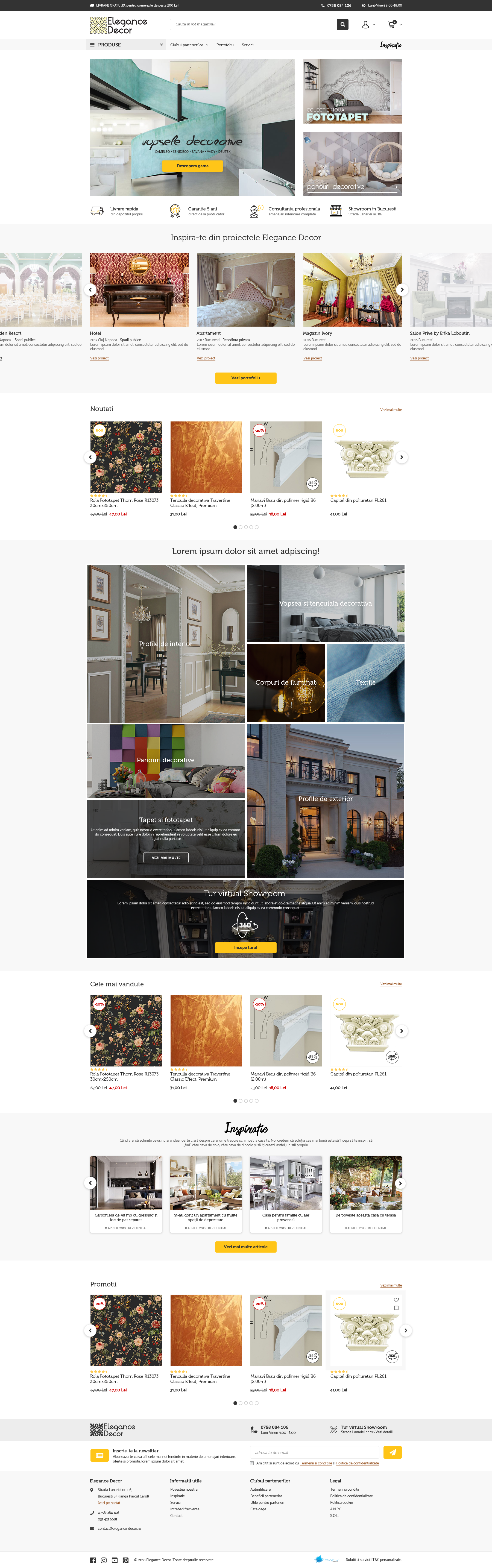 In anul 2011 povestea Elegance Decor a inceput sa prinda contur, avand ca scop sa cucereasca arta frumoasului in amenajari interioare. Evoluand constant, in doar doi ani au reusit sa amenajeze un showroom pentru a fi mai aproape de clientii acestora, pentru a-i putea inspira. Sunt ghidati de dorinta de a ajuta ficare apartament sa devina “acasa”, sa prinda acel contur in care clientii acestora sa se simta pe deplin multumiti, fie ca este vorba de un decor clasic, unul minimalist, elegant sau rustic.