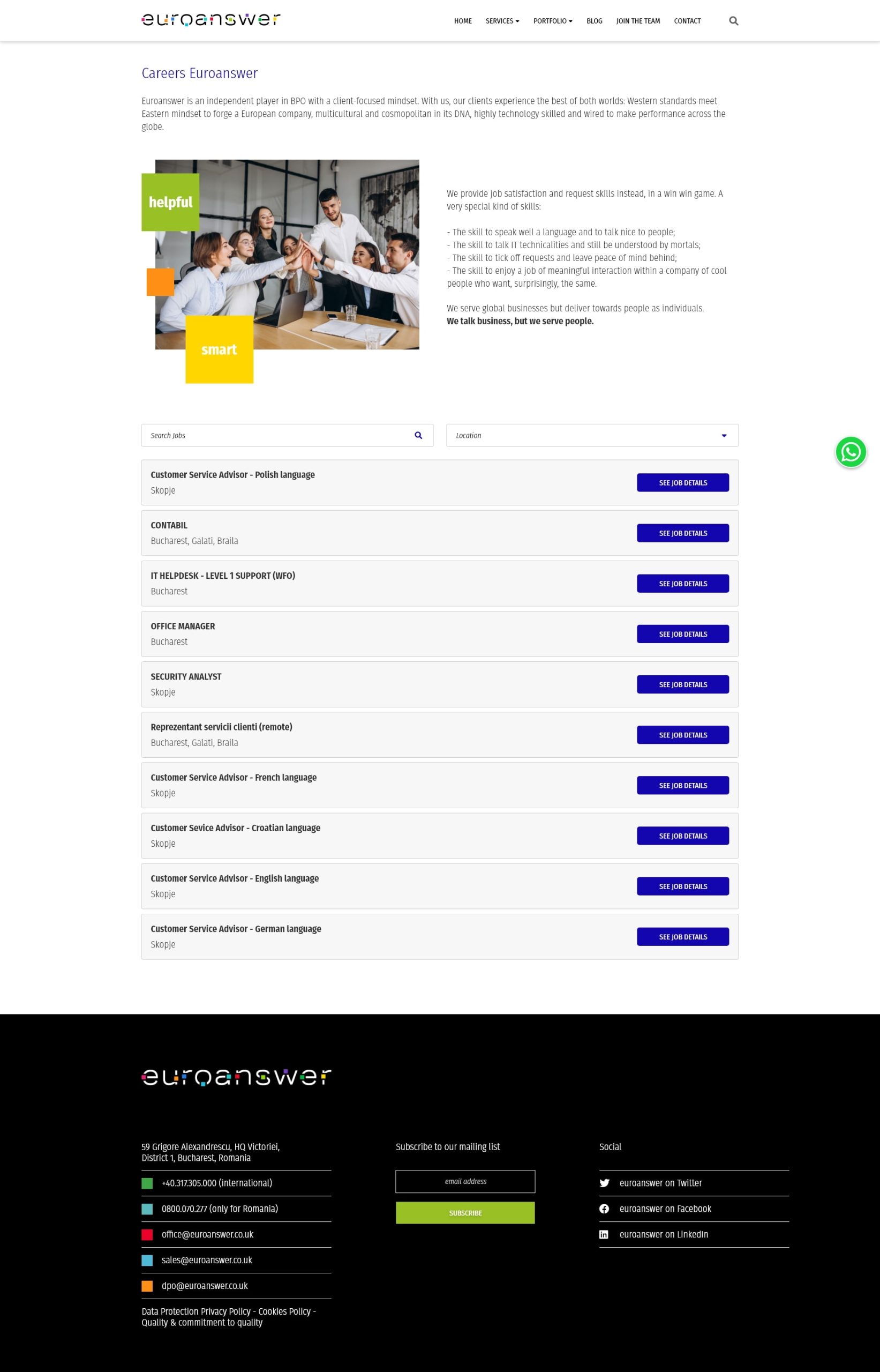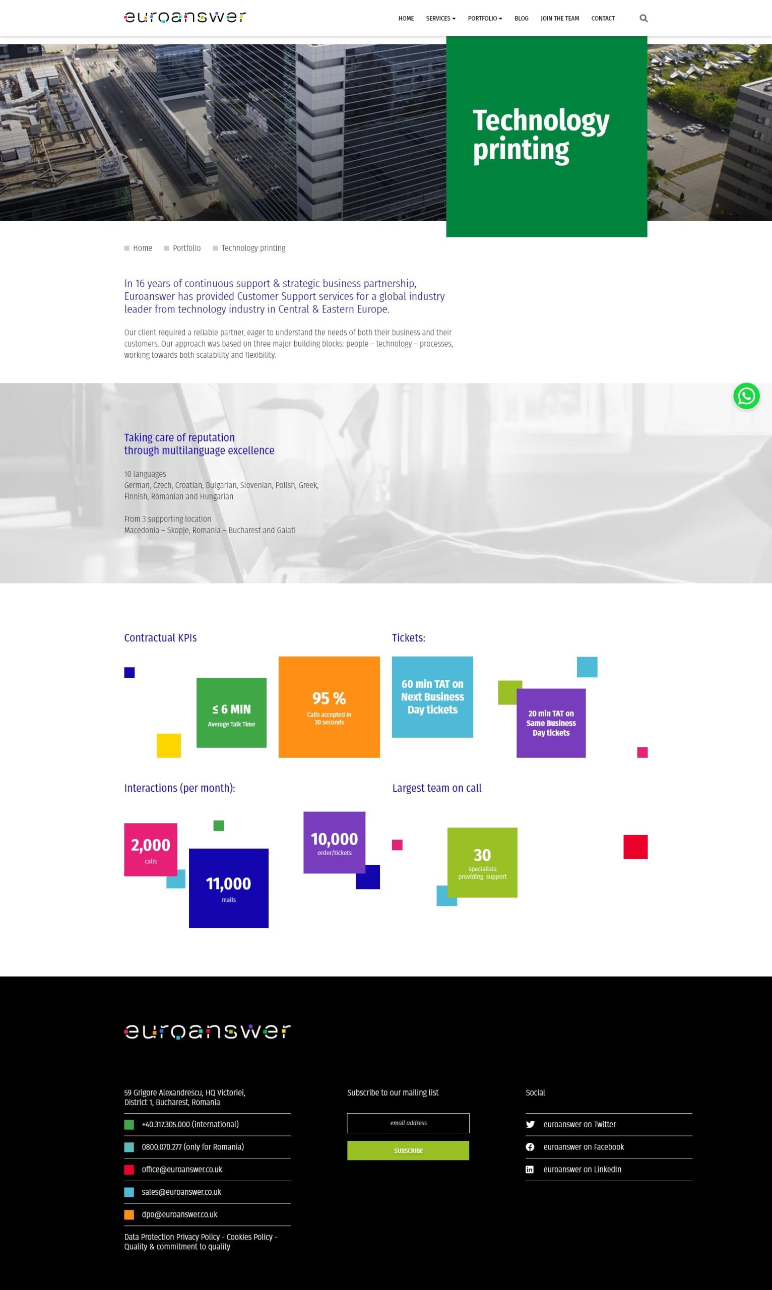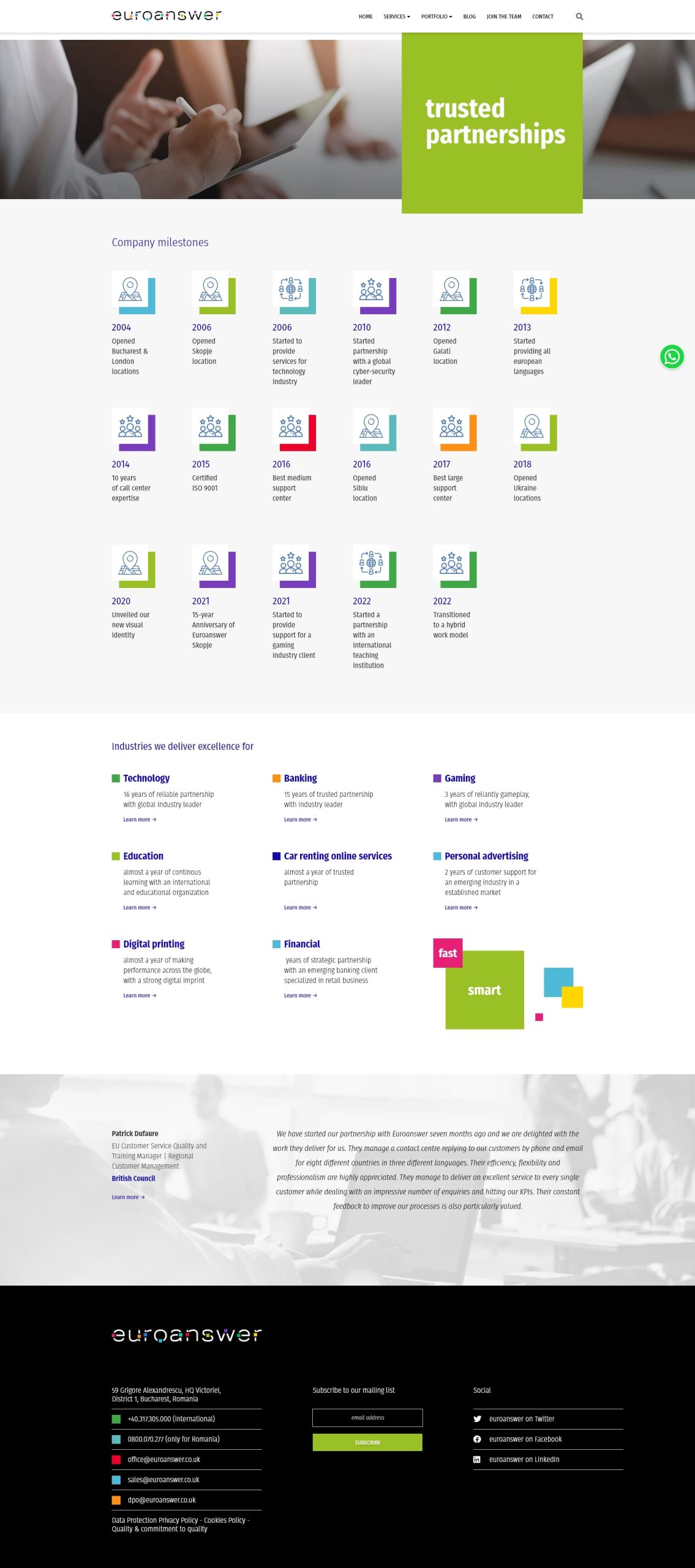 Colaborarea cu clientii nostri este privita de fiecare data ca un parteneriat si lucram intotdeauna pentru a obtine rezultatele dorite. Avem privilegiul de a lucra cu firme din toate domeniile de activitate, imbogatindu-ne astfel expertiza.