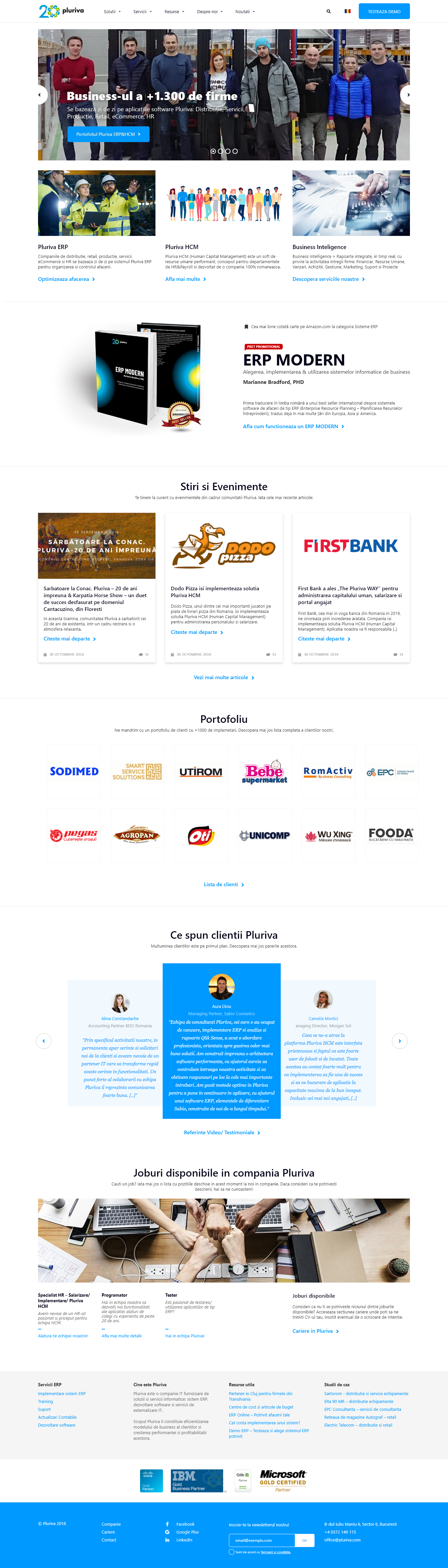 Pluriva este o companie IT furnizoare de solutii si servicii informatice: sistem integrat de gestiune a afacerii de tip ERP&HCM, dezvoltare software si servicii de externalizare IT. Anul 1998 este cel ce marcheaza momentul in care compania Pluriva pune bazele primei aplicatii informatice de gestiune. Inca de atunci, scopul acestora este de a eficientiza modelele de business ale clientilor sai si de a creste performanta si profitabilitatea acestora.