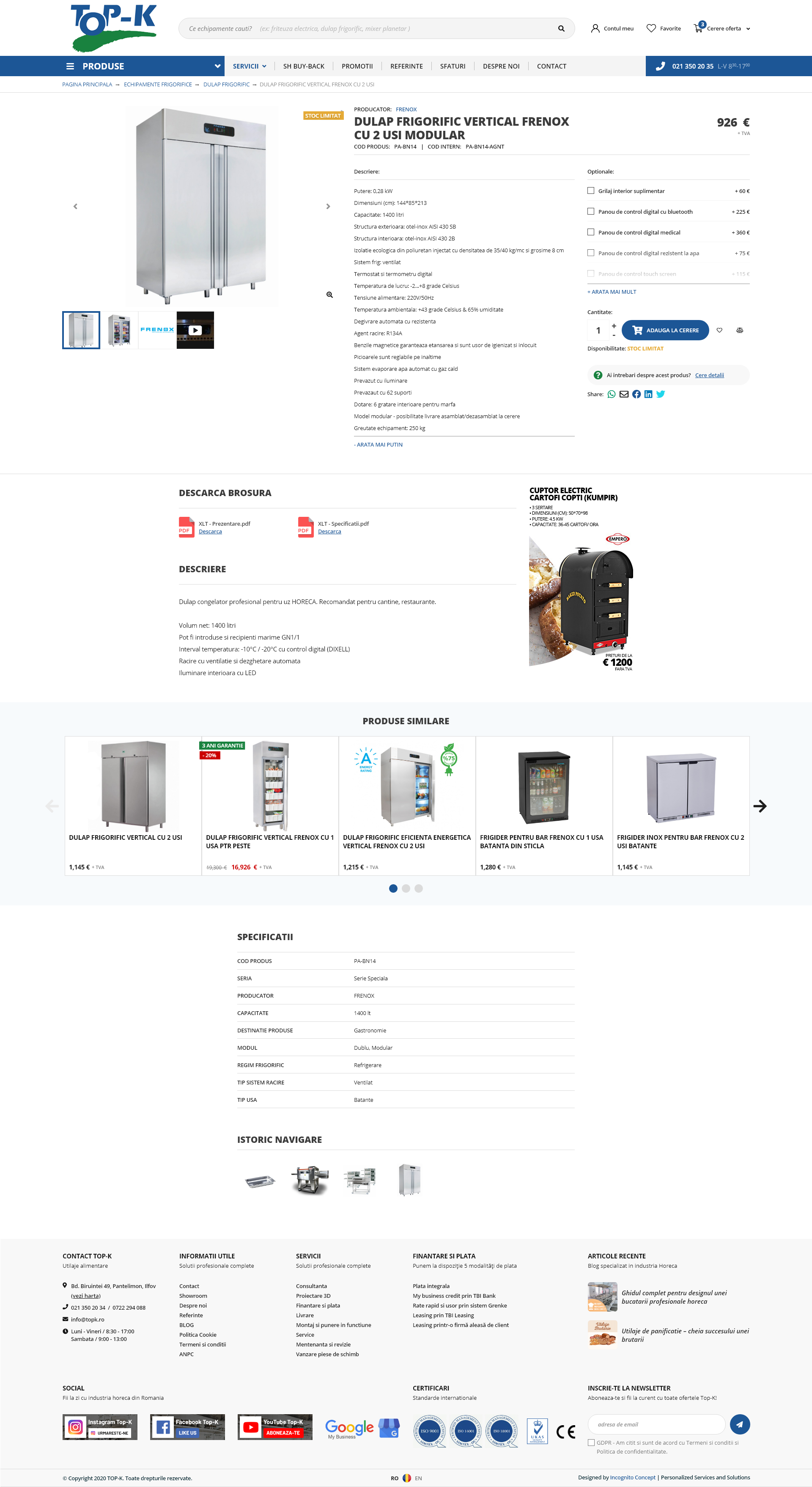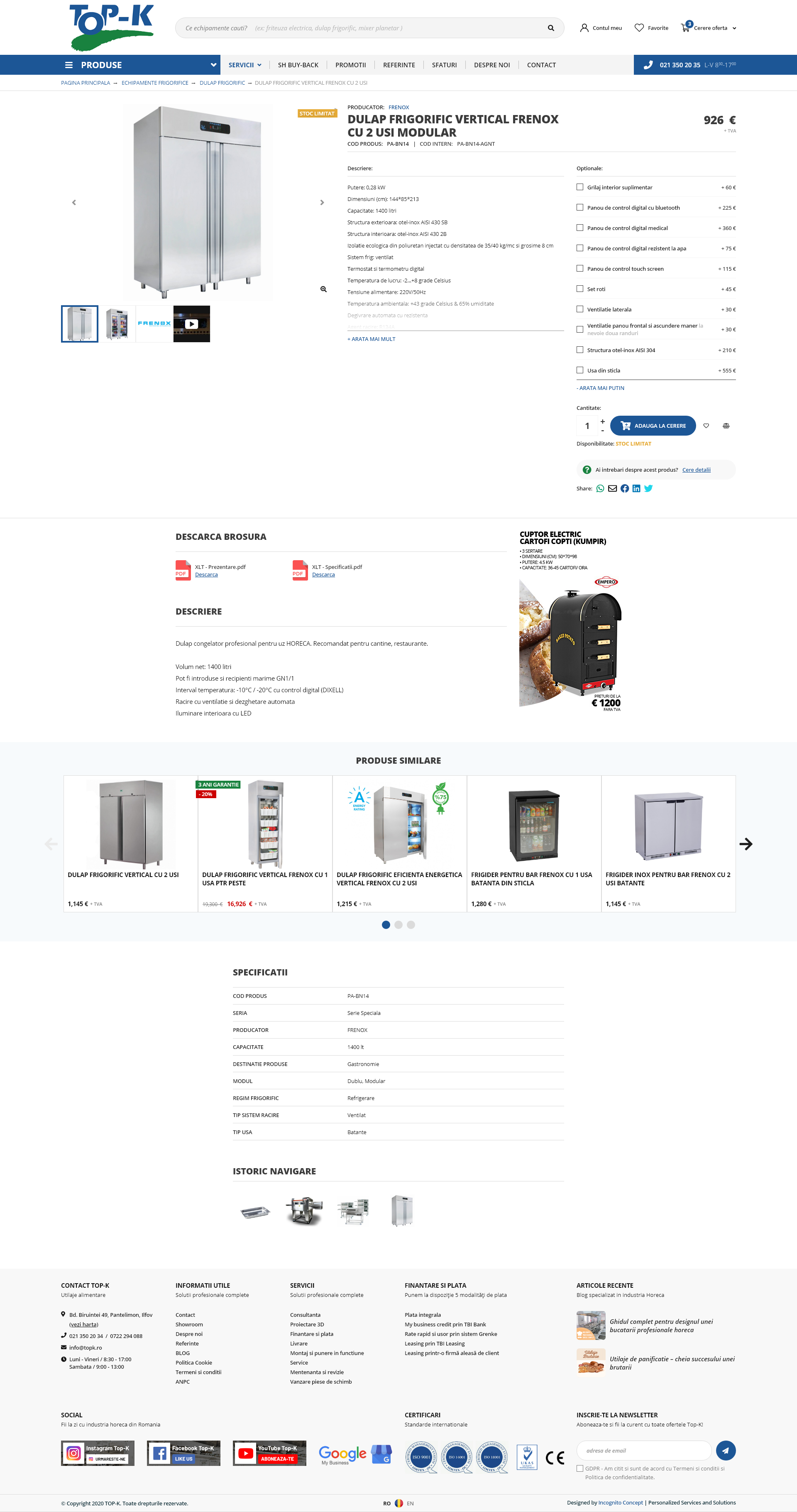Unul din principalii furnizori in domeniu cu o experienta de 24 ani si un sediu central si showroom de 1600 mp unde expun ultimele noutati in materie de echipament si utilaje alimentare profesionale.